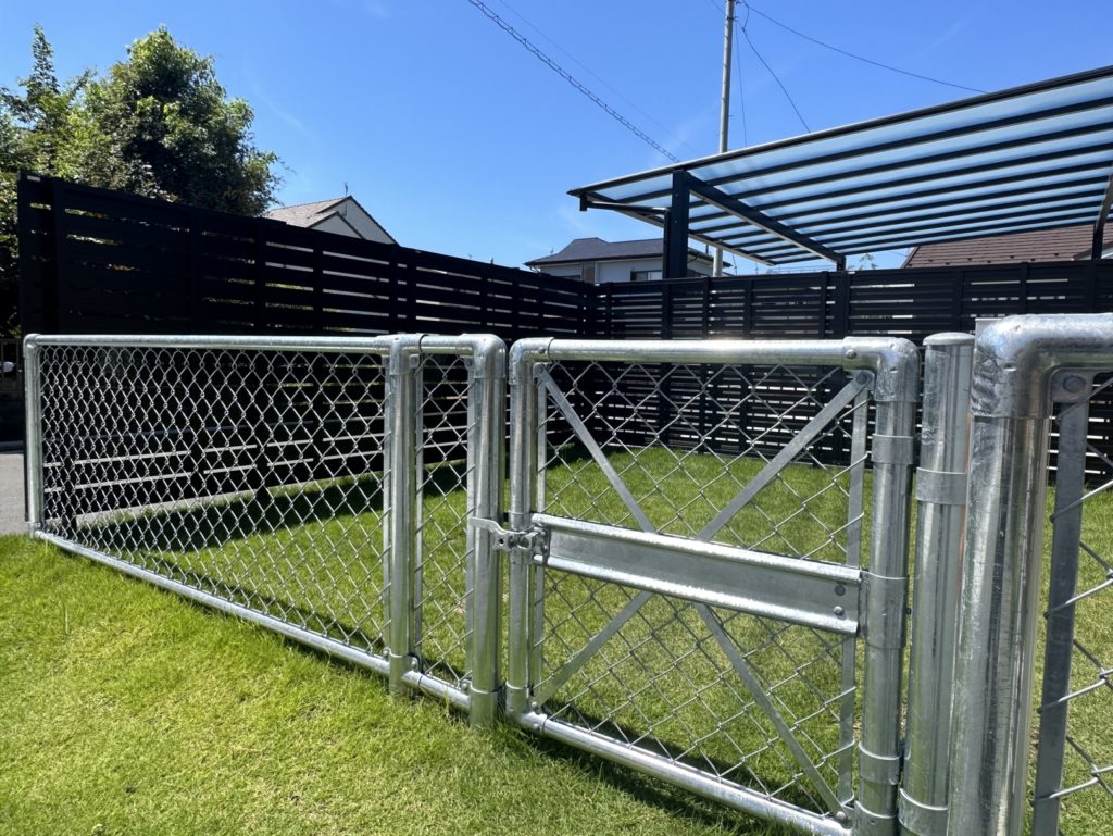 天然芝の心地よさと、目隠しフェンス+PCフェンスの組み合わせで、安心して遊べる空間を実現しました。